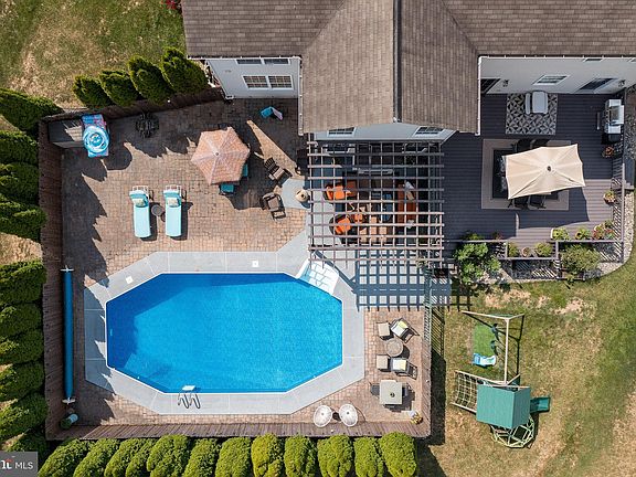 Beautiful 4 bed 2.5-bathroom home in a coveted cul-de-sac neighborhood nestled among mature landscaping with gorgeous views. This 3,090sf home (with another estimated 1,000sf in basement) features a 2-story great room with a soaring fireplace and stone from floor to ceiling, creating a dramatic focal point and sidelights to the vacation-like back yard. As you walk into the level entry home, you are met with a stately staircase to the second floor and a sprawling main level that includes a formal living space, private office, formal dining room, a great room, an eat-in kitchen, and a pantry laundry room. The 2-car attached garage makes bringing in the groceries and exchanging the car seats a breeze! The second floor showcases the great room with a catwalk that overlooks the space and separates two of the four bedrooms to create a guest room with some privacy if needed. The primary bedroom is huge and hosts a sitting area, a large walk-in closet, and a soaking tub with a double vanity in the en-suite. The basement is the full layout of the home and is partially finished, allowing for the creation of the perfect game room or potential in-law suite. Retreat to your own personal backyard oasis that hosts endless summer fun, staycations, and evening cookouts on the sprawling deck. Enjoy the privacy of the in-ground pool area surrounded by mature trees, bamboo fencing, a covered pergola, and an outdoor TV enclosure with hookups. There is plenty of green space for a play set and ample gardening. This home is within walking distance to the elementary, middle, high school, and town square. This is a one-of-a-kind opportunity to make your forever home a reality!