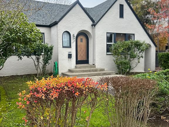 Large fenced-in back yard, driveway and parking area, roomy covered outdoor side porch but no garage access. A cat is OK, small dogs only (under 25 lb.)