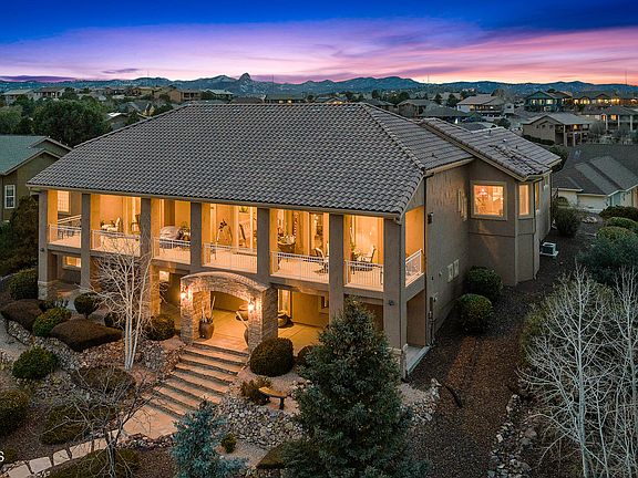 180- degree Hilltop Location with VIEWS!!!! VIEW!!!! VIEWS!!!! On .39 acres. Beautifully appointed spacious home. Located with-in minutes of downtown Prescott. 4,800 sq.ft. 4 bed - 5 baths. Main Level includes Large Gourmet Kitchen, Island Seating, Great Room, Living & Dining Room, Oversize Bedrooms, Master Suite, Walk-In Closet w/ Built-Ins, Large glass Windows & Huge Laundry. Interior features Hard wood flooring, Granite Countertops, FP, Capstone Baluster, Custom Cabinets & Leaded Glass accents thru-out. Lower level includes a Large Bonus Room, Wet Bar with Junior Suite, Full Bath & Storage Space. Lots of Covered Deck & Patio Areas Including, Custom Stone Entry w/ Accents, Flagstone, Pavers, Iron Fence & Pergola. 3 car garage w/ workshop & Level Entry.