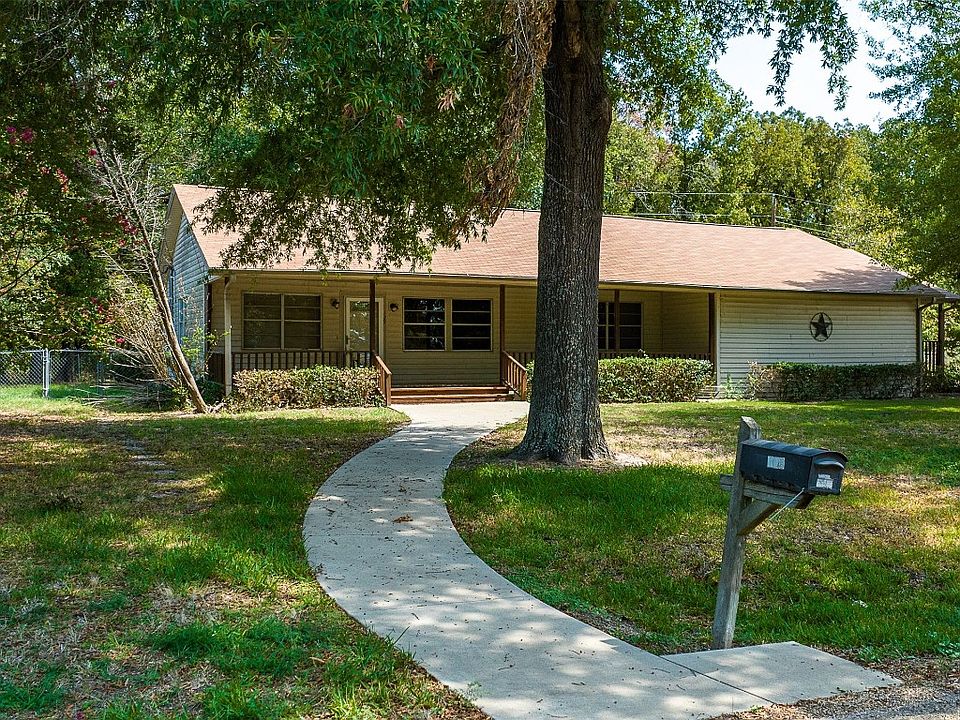 Affordable getaway or full time home at Cedar Creek Lake. Off-water property with lake views sitting on 2 lots. Cute house in great neighborhood with no HOA! Great curb appeal with vinyl siding and large shade trees. Concrete driveway large enough for 6+ cars and a 2 car garage with automatic opener. Oversized utility room would make a nice craft room or home office. The house has 3 large covered porches and fenced backyard. The house is in need of updates and leveling which is reflected in the asking price. All electric and located in Mabank ISD. Currently on septic but can be connected to sewer system. Contact ECCFWS for more information. Seller has never desired to connect.