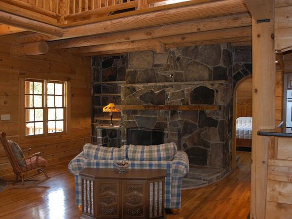 Looking for mountain living, or to get out from the city, just a bit? This beautifully maintained Barna Log Home sits on 5 rolling acres, and looks like a setting from a storybook. Wood flooring, bannisters and walls have been artistically stained, providing stunning variations and depths in color. Four fireplaces grace this home and ample windows and skylights provide plenty of light. A large office with a bathroom, closet and an exterior entrance provide just the right space for working at home. On the lowest level is a full living suite, complete with an office, kitchen and even a laundry room. The porches and decks on this house are amazing, and across a rolling backyard is a beautiful 24' by 36' outbuilding. Schedule a showing today, this grand mountain home will not disappoint.
