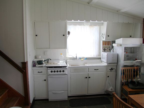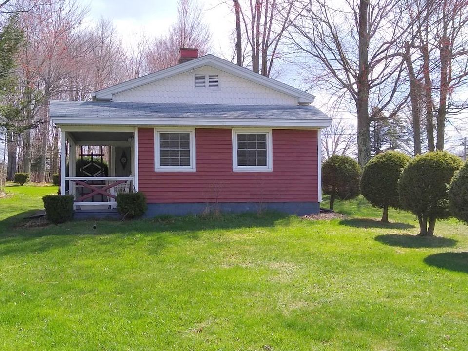 LAKEFRONT COTTAGE-$149,000-Cozy 2 bedroom lakefront cottage with picturesque setting. Features living room with stone fireplace, eat-in kitchen, covered porch, and patio.
