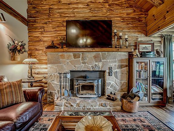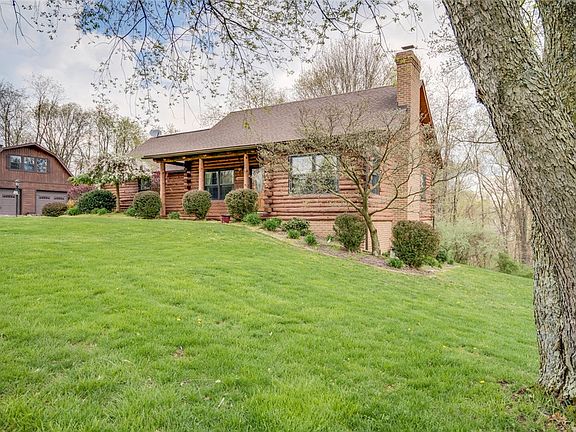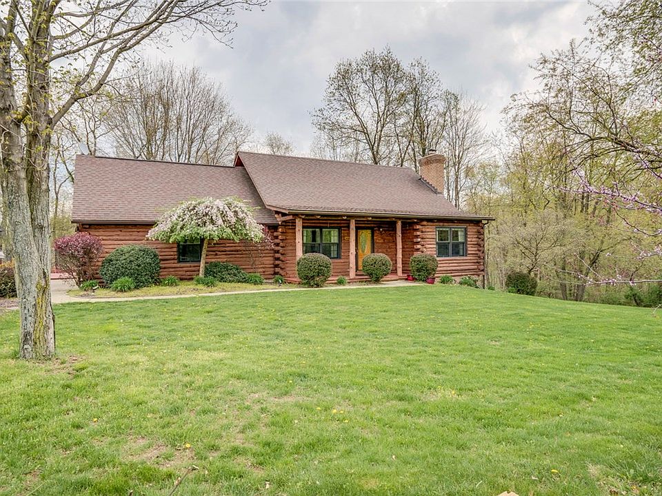 Unique & rare opportunity to own a lovely log built home on 8.5 acres, complete with a well stocked pond and 30x40 Amish built 3 car, 2 story barn to house your toys and workshop too! Inside the home you'll find stunning Tobacco Road, Acacia hardwood floor that spans the first floor and compliments the rustic decor. The kitchen features newer stainless steel appliances, Jenn Air convention double ovens, Jenn Air 5 burner gas cooktop with Jenn Air vent hood, quartz countertops and center island. Beside the kitchen is a large warm and cozy sunroom where you can take in the views of the wooded yard and pond. Other bonuses include a completely renovated hall bath, three tiered deck, finished game room with walkout to yard, power vent hot water tank, propane fireplace, wood burning stone fireplace, and a wood stove, double wide concrete driveway and more.