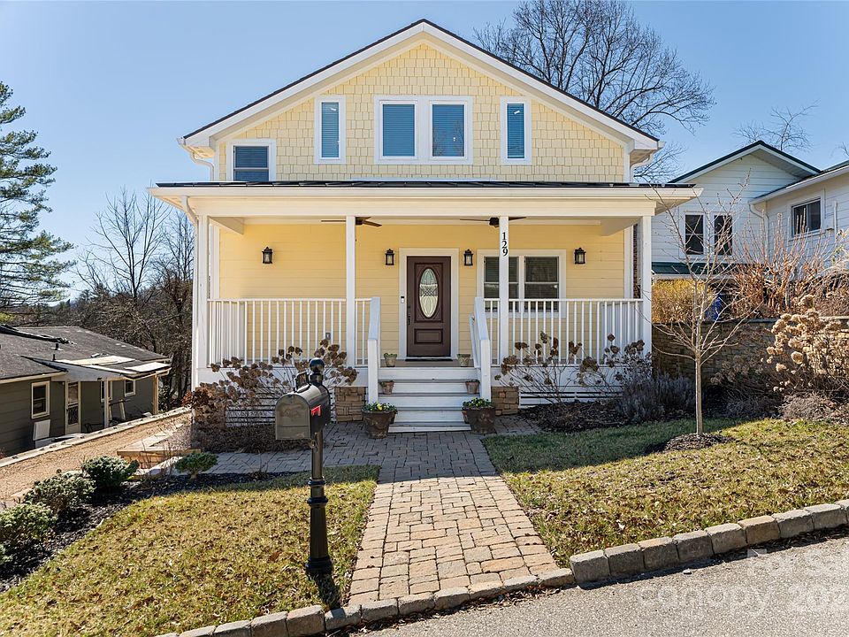 Experience timeless craftsmanship and modern comfort in this beautifully appointed 3-bedroom, 3.5-bath home in the heart of Brevard. Spanning 1,904 square feet, the light-filled interior features 9-foot ceilings, crown molding, and rich hardwood floors. The open living area flows seamlessly into a contemporary kitchen with stainless steel appliances, quartz countertops, and an eat-in bar, connecting to a cozy den with built-ins and a gas fireplace. The main-level primary suite offers private deck access, a walk-in closet, and a spa-inspired bath with a tiled walk-in shower. Upstairs, two guest bedrooms, a full bath, and a versatile loft provide space for relaxation or work. Designed for wellness and efficiency, the home includes a whole-house water filtration system, advanced HVAC with air filtration and humidity control, and sound-dampening interior walls. Enjoy outdoor living on the rocking chair front porch or rear deck overlooking professionally landscaped grounds.