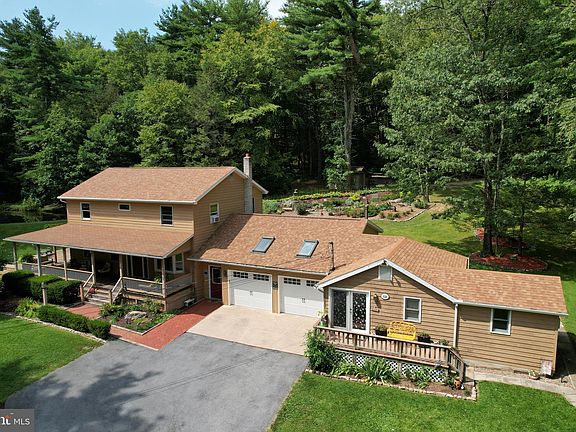 When peace & quiet and privacy counts look no further! This wonderland of a property consists of a three bedroom, 2.5 bath home with an attached one bedroom apartment on 2.2 acre very private, beautifully landscaped and wooded lot with a spring fed pond. The paved driveway leads you to a welcoming wraparound front porch, prefect for morning coffee or evening drinks. Enter into a two story, tiled foyer into the open layout and take in the wood floors, oak trim, and plentiful windows. The sizable living room boasts tons of windows and a sliding door to the porch and deck bringing the outside in while the ample sized dining room features a bay window and provides room for large gatherings. Remodeled in 2020, the updated kitchen boasts quality oak cabinets, granite countertops, stainless steel appliances including a gas cooktop and a wall oven, a breakfast bar, and a shiplap wall. A full bath and access to the oversized two-car, heated garage (electric space heater or wood stove) complete the main floor. Upstairs you'll find a spacious owner's bedroom with a sitting area and double closets, as well as two additional bedrooms, a loft, an updated full bath, and a laundry room. Have fun in the finished lower level family room with hickory floors and wet bar area, which is serviced by a half bath. The attached one bedroom apartment consists of a living room, kitchen/dining room, bedroom and a full bath with laundry machines. The current tenant is on a month to month lease, offering flexibility to retain the tenant, free up the space for your own use as an in-law/teenage suite, or a home office, or use it as a short-term rental. The parklike grounds are highlighted by the patio with firepit, spring-fed pond, and lush gardens. The sheds and chicken coop (not the chickens) will remain, as will the fish in the pond. Commune with nature and enjoy the wildlife around you. Just outside Centre Hall, within 20 minutes of State College, and not far from state game lands and fishing areas, makes this a great primary home or a second home retreat.