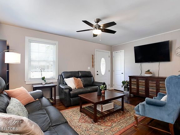 A Beautifully Charming All-Brick Home with a Spacious Backyard that can provide both serenity and plenty of room for entertaining, located in the welcoming community of Lenoir City, offering a harmonious blend of comfort and convenience. With six rooms spread over an area of 1005 square feet, this well-maintained home is perfect for those seeking a peaceful suburban lifestyle in a cozy home with the charm of a serene neighborhood. Situated on a nice level lot the well-kept landscaping adds to the home's curb appeal, the house features a large fenced backyard, offering plenty of space for relaxation and ideal for pets, kids or outdoor activities. and a fire pit for those cozy evenings under the stars. The newly added screened-in porch provides a perfect spot where you can enjoy the fresh air without being bothered by insects. Additionally, an extra storage building provides ample space for your belongings. As you step inside, you're greeted by the warmth of hardwood floors that flow throughout the house, adding a touch of elegance and ease of maintenance. The kitchen is updated with stylish subway tiles, stainless steel appliances, and granite countertops, making it both functional and visually appealing. The bathroom also comes updated, featuring clean subway tiles. If you're in need of a third bedroom, the dining room, a seamlessly new addition to the home, can be easily converted to cater to your requirements, offering flexibility in how you use the space. The house is equipped with a new Goodman HVAC system installed in 2019 and a new RHEEM water heater in 2021. From the front of the house, take in the stunning seasonal lake views and enjoy quick access to public lake amenities nearby. The location of this house is highly convenient. It's within walking distance from historic downtown Lenoir City, offering a taste of local culture and history. Shopping, dining, parks and schools are easily accessible, making daily errands straightforward.