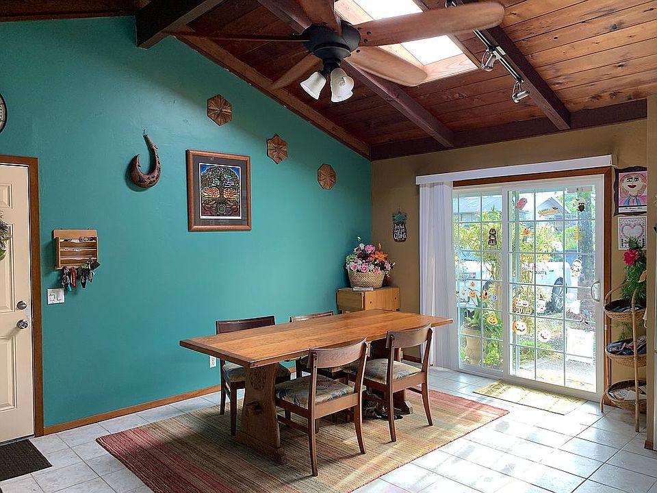 A spacious solar-powered home with lots of rooms and an upgraded separate living area. It is rare to find a property with this much room for living, storage, guests and entertaining. The main home has four bedrooms, all with new flooring. The bathrooms are newly tiled; the hallway bathroom has a Jacuzzi tub and the master suite has a beautiful walk-in shower. The oversize open kitchen is perfect for the cook, with lots of prep space and eat-in dining. New ceiling fans and lighting throughout. The family room has a sliding door to an additional lanai, which is currently used as a dog-friendly space. The separate living area has been upgraded everywhere! In addition, there is a spacious living area, bathroom, bedroom and a bonus room (which could easily be a sixth bedroom). The basement is finished and could be used for storage or another bonus room.The fully owned solar panels with net metering mean huge savings on otherwise expensive local electric bills. A brand new solar water heater system was installed in January 2020. The home has multiple sliding doors, 2 split AC and whole house/attic fan to beat the heat. The three car space garage houses the laundry area, which has been upgraded with cabinets and tile to give it a finished feel.The yard is beautifully landscaped with tropical flowers, white and yellow pineapple, mature avocado and kukui nut shade trees. A true outdoor oasis. There are plenty of places for seating areas and a great spot for a BBQ. The house is large yet cozy, feels like home from the moment you come inside. Great location. You are minutes from everything in Hilo and a very short distance to the Hilo Municipal Golf Course. A true paradise, nestled in a quiet and safe neighborhood. Just relax and enjoy! Bring your golf clubs;)