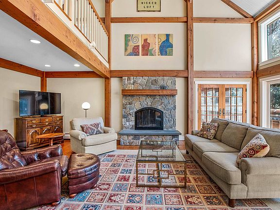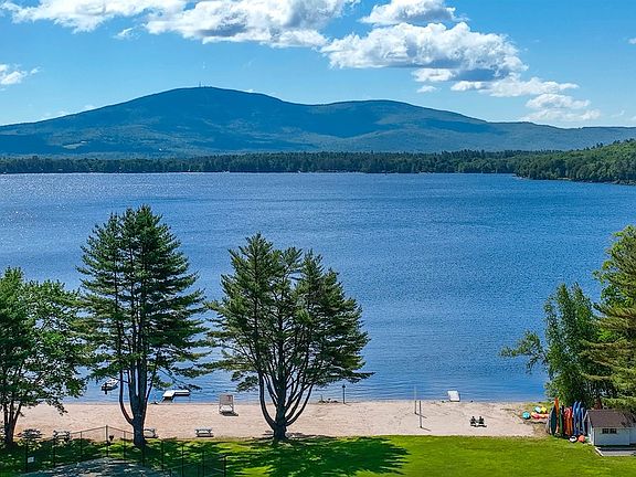 Located in one of the region's prime lakeside communities, this spectacular 3755 sq.ft. home is a 5 minute walk to a private sugar-sand beach on the crystal clear waters of Pleasant Lake. Soaring windows infuse sunlight into expansive yet cozy great room. A commanding native stone wood-burning fireplace provides ambiance for cooking, dining and relaxing. The chef's kitchen features top of the line appliances and abundant storage. The screen porch is a favorite respite or entertaining space. An open deck overlooks babbling Little Brook. The first floor primary suite features an upscale bath, private screen porch and close-by den. Upstairs family and guests will settle into 3 spacious bedrooms with an inviting loft reading area. Retreat to the lowest level rec. room for first-run movies on a wide screen or a family game of pool. A large utility workshop space can accommodate your hobbies. The spacious 2 bay garage features upstairs storage. The Slope and Shore community consists of 71 private home sites located on a total of 175 acres. Originally designed as a vacation community, many residents make their year-round homes here. The community waterfront features the wide sandy beach with kayak, paddle board storage available. Tennis and Pickle Ball courts. Pleasant Lake is a Class A, deep water, 600 acre lake in the heart of the Lake Sunapee Region!