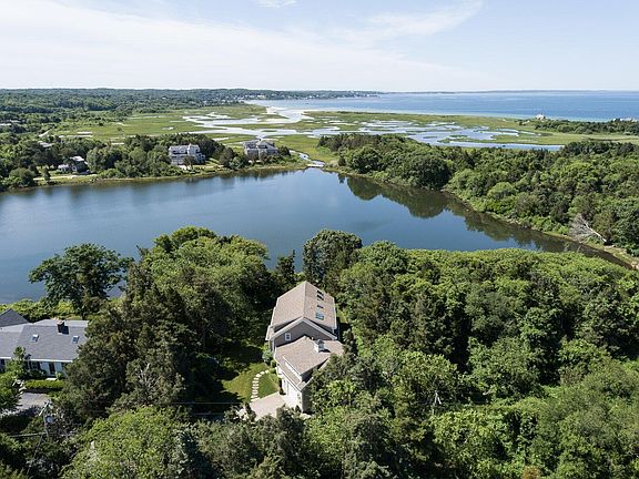 Drive down the winding dirt road while watching the osprey soar. Breathe in the salt air, it's another world here where the ocean meets the sand. Around a bend another glimpse now of the harbor then onto this custom built home, nestled in the cedars on a private pond front refuge offering a serene and tranquil setting. With views over Fresh Pond to peeks of Great Sippewissett Marsh and Buzzards Bay, this home boasts high-end finishes, quality craftsmanship and materials. The owners have kept some of the feel of the 1940's post & beam barn that was on site, with cathedral beamed ceilings, skylights and even repurposed barn boards in the den's built-ins. Three bedrms & two and half bathrms the open floor plan offers ample room. The shingled cape style is traditional, charming, & comfortable. The property also features beautiful gardens, stone walkways and patio, plus covered areas that enhance visual appeal and functionality. Easy access to the Shining Sea bike path and the coveted Black Beach inlet, perfect for the outdoor enthusiasts! All of this is situated in the charming seaside village of West Falmouth. Don't miss this offering.