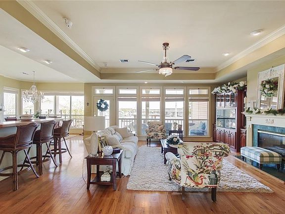 Beautiful Acadian on Deep water Tchefuncte River. Life at it's best! Open Flr pln with porches/balconies on front and back. Oversized lot (0.445 acres) Bulkheaded riverfront property with boat dock and hoist. Covered parking and covered patio. On ground level features a mini kitchenette and rec rm./apt, full bath (not included in sq footage). Main house boasts an updated kitchen with stained cabinets, granite, 3 large bedrooms, 2.5 baths, study, dbl-sided fireplace, large laundry.