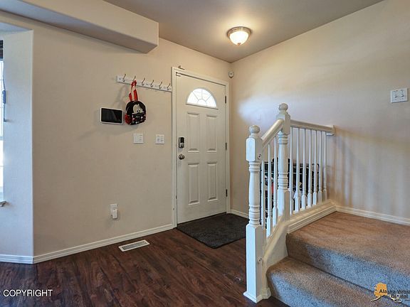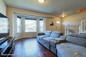 Modern design. Primary suite w/WIC & Bay Window. Two extra bdrms, full bath and laundry all on second floor. Kitchen has rich designer colors, Stainless Steel appliances, Costco size pantry & breakfast bar overlooking the spacious greatroom. Access to the fenced backyard via a sliding glass door. Short distance to Tikahtnu Commons, Anchorages premier shopping, dining & entertainment complex.
