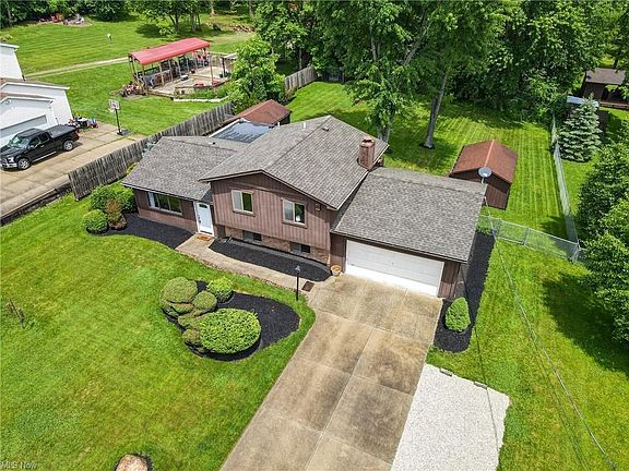 Beautiful three level split located on a picturesque .69 acre lot. The fully applianced kitchen features granite counters and opens up to a spacious L-shaped great room/ dining room combination. Off the dining area is a cozy all season Sunroom addition which leads out to a private patio and large fenced in yard. The lower family room area measures a cavernous 27x16 and features a second FULL bathroom, laundry, and a wood burning stove. The upper floor main bedroom is enormous, measuring in at 27x16, with its own private, second floor balcony. Other features include: TWO 16x12 outbuildings, an oversized attached garage, newer furnace/ AC, newer water softener, newer flooring and newer roof.