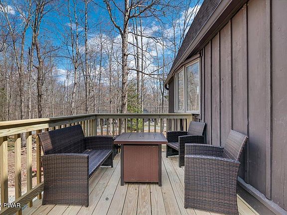 Tucked away on a quiet street is this charming 3 bedroom, 2 bath home is set on over an acre! The property features an abundance of natural sunlight as you enter the home to the spacious living room, large kitchen, dining area and full bath. Retreat to the 2nd floor where you will find 3 bedrooms & a second bath. The lower level features a finished office space, storage and a separate entrance--ideal for work-from-home. Located just minutes from I-84, downtown Hawley, and Lake Wallenpaupack, you'll enjoy easy access to shopping, dining, and outdoor recreation.. Head outside and enjoy the four seasons on the new deck or play in the spacious yard! There's no formal HOA and short-term rentals are permitted with a township permit, making this a great option for investment, a full-time home, or a relaxing retreat. New Deck & Drainfield!