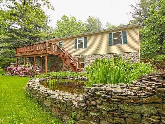 Price reduced on this amazing opportunity in Pleasant Valley School District! Beautiful 3 bed, 2 full bath raised ranch home with a huge detached 2 car garage, plus 3 additional lots totaling 14.7 acres. The lot with the home is 1.06, the 2nd lot is 1.1 acres, the 3rd lot is 1.07 acres and the 4th lot is 11.48 acres! You could build more homes, sell them individually, keep horses and other animals on the property, leave it as-is, your choices are endless! The current home is stunning, with 2 koi ponds, 2 decks, a perfectly finished LL with living room, wood/coal burning stove that heats the whole house, office, laundry room and partial garage for all your toys! Upstairs is perfect as well, with family room, eat-in kitchen, dining room, master bedroom with ensuite bath,