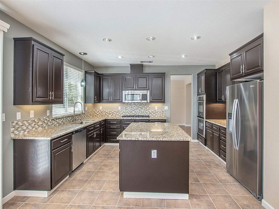 • KITCHEN FEATURES: 220 Volt Outlet, Counter - Tile, Dishwasher, Eat In Kitchen, Garbage Disposal, Microwave, Double Oven, Gas Range/Cooktop, Refrigerator, Ice Maker Hookup, Island, Counter - Stone, Oven Built-in