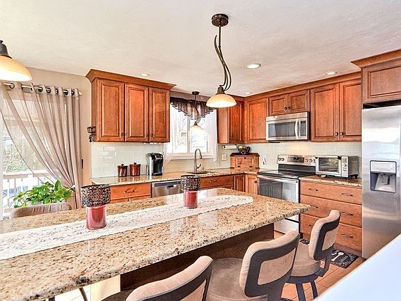 This beautiful, raised ranch sits nestled on quiet road and offers 4 beds and 2 full baths. Its large kitchen is equipped w/ granite countertops, maple cabinets and subway tile backsplash. You will also find a spacious living room with cathedral ceilings and recently remodeled full bath! The finished basement includes a master bedroom and second full bath. Natural gas forced hot air, central air and new electric hot water tank this home will check everything off your list. Outside you will find a large deck, above ground pool, storage shed and freshly mulched fenced in yard for privacy! Located right off Route 24 and 140 making this home great for commuting. Open Houses Sat & Sun 11:00am - 12:30pm 4/15-16th. Offer due by Monday 4/17 11:00am.
