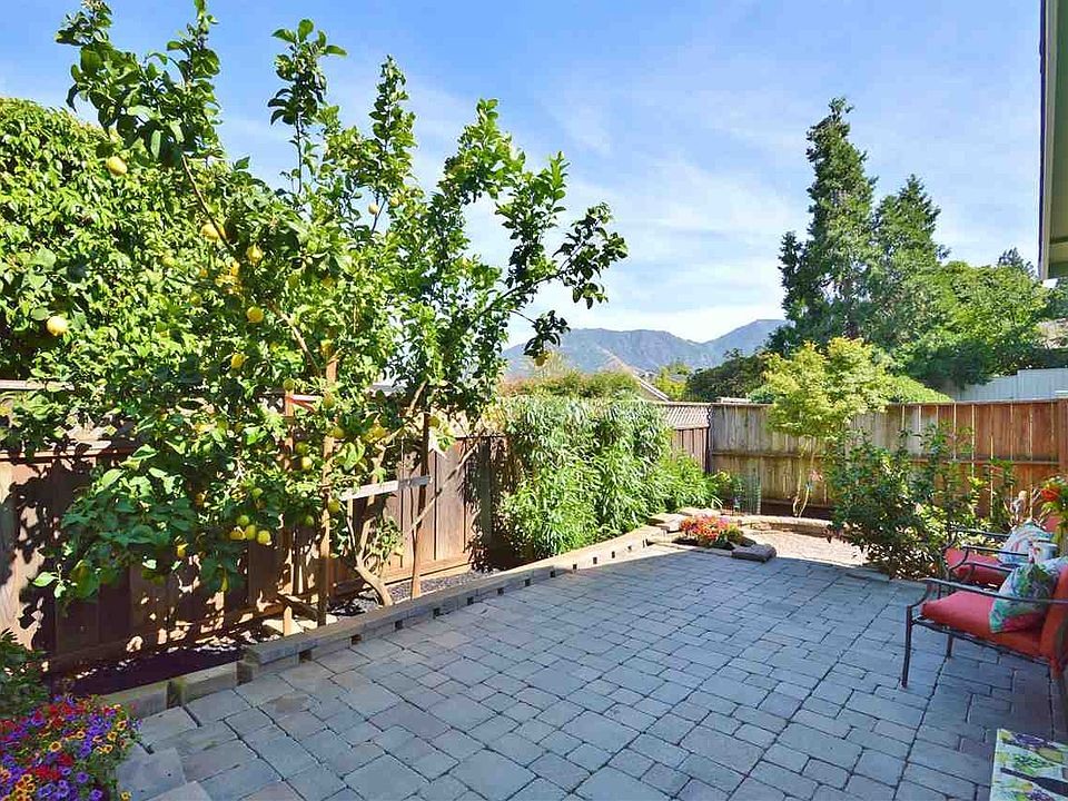 Gorgeous remodeled single story Duet attached only at garage wall. Lots of upgrades featuring Bamboo floors, crown molding, ceiling fans, gas fireplace, Granite kitchen w/gas range, stainless appliances, mosaic back splash, and slider to private courtyard patio. Remodeled baths, walk in closet in Master suite, whole house fan & upgraded doors. Back yard with pavers, hot tub, garden and gorgeous Mt. Diablo views. Private, peaceful location next to open space. Near walking trails, downtown Clayton, and award winning schools. Will not last, so hurry!