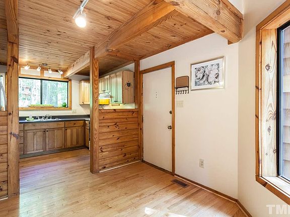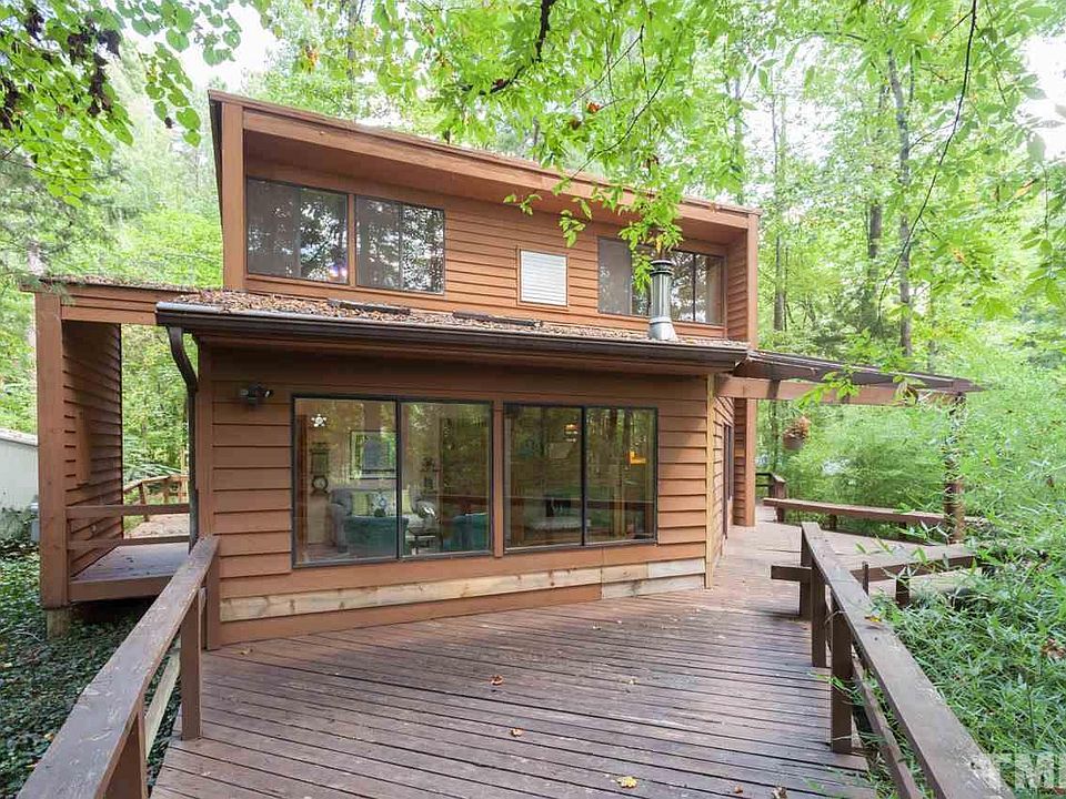 Fun & Funky PASSIVE SOLAR HOME w/ complete privacy minutes to downtown Hillsborough, I85 & I40! FIRST FLOOR MASTER w/ large closet & en suite bath. Oak flooring thru-out main level. Ample natural light from over sized windows & wood burning stove make this contemporary home feel like a cozy cabin in the woods! Vaulted pine ceilings. Upstairs boasts 2 large bedrooms & a full bath! New Carpet up. Enjoy the quiet & solitude from one of your HUGE decks! A nature lovers paradise. ***WELCOME HOME***