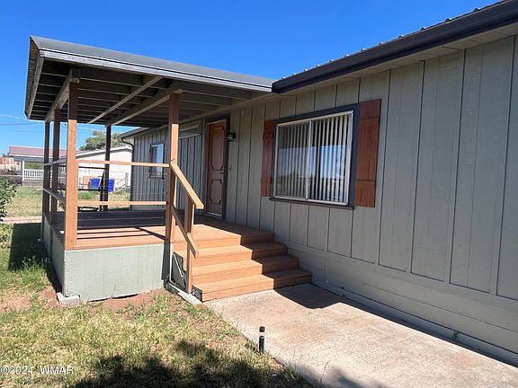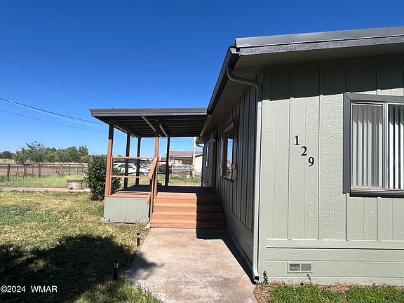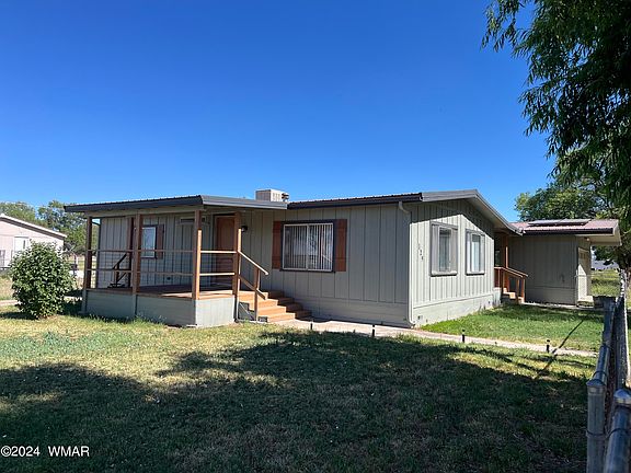 Newly remodeled, 2 bed 2 ba Doublewide home on beautiful corner lot with mature trees, and fully fenced yard. Kitchen has newer Refrigerator, range/oven,& dishwasher. Washer and dryer included. Newer metal roof, front and back covered porches and a private concrete covered patio & exterior storage shed. Detached 2 car garage w/2 storage rooms and covered breezeway to home. Large RV parking with electric hookup. Town water & sewer, Natural gas, and Grid tired solar with APS. Home is surrounded by pastures for a country feel. Grocery store, Walmart, restaurants, and walk in clinics, all within 1/2 mile. Hospital 20 minutes away. This home offers the perfect blend of comfort, convenience and country charm, making it ideal for a summer getaway or a cozy family starter home.Owner/Agent