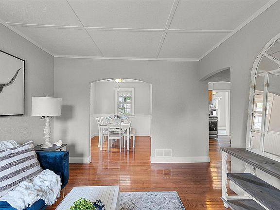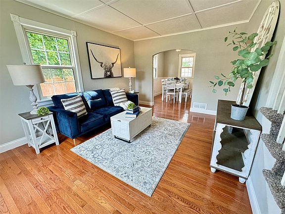 Delightful 1.5 story home boasting 4 bedrooms, 2 full baths. Home offers character & charm with its original hardwood floors & wood kitchen cabinets. The thoughtful floor plan features a master bedroom on the main level also convenient main floor laundry. Upon entering, you'll appreciate the seamless flow of the cozy living area to the separate dining room- perfect for entertaining and family gatherings. Upstairs offers two nice size bedrooms, lower level offers the forth bedroom & full bath. Walkout basement provides additional space, ideal for a rec room or hobby room. The kitchen leads to a glass enclosed porch perfect for relaxing with your morning coffee or a nice reading nook. Step outside to a covered deck the overlooks a flat, partially fenced yard, a concrete patio perfect spot for a picnic table and fire pit area. A one car garage or utility shed adds to the property's appeal. Recent updates have been made throughout! Come see what this wonder home has to offer!