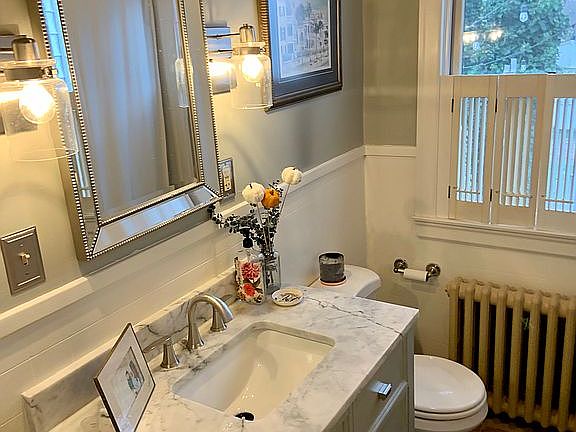 Most charming home with 10 ft ceilings in a great neighborhood 2 blocks from Downtown Danville. Covered side porch and large backyard deck. Backyard has rock gardens with a garden shed and wood plank privacy fence with a double gate. Kitchen hosts stainless steel appliances and newly added dishwasher. Bathroom has been updated with white tile in shower, new vanity with marble top and lighting. House is flowing with charm including built-in bookshelves in the family room and corner cabinets in the dining room. Basement could be finished with ease for extra living space. A must see home! New HVAC (2021), serviced boiler (2021), new vapor barrier in crawl space (2021), chimney cap installed (2021), refinished hardwood floors (2021), preventative mold remediation in crawl space (2021)