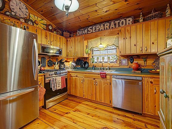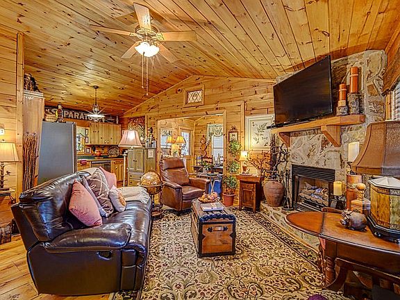 Your going to fall in love with this 2br/2ba Cherry Lake charmer immediately upon seeing it! Great curb appeal makes this one super special! This one has a little more than what most cabins in this popular neighborhood offer...multiple decks, private back covered porch and garden area, separate dining space that allows more room in the kitchen area, Master Bedroom w it's own Bath... beautiful wide plank hardwood flooring throughout, updated stainless steel appliances featuring a gas stove, semi-private since no one will be building behind you! Great parking space, very quiet street & easy access to Downtown Blue Ridge. This one comes furnished w high end furnishings so converting it to a short term rental will be an easy, quick process! Renters will want to book this one every time they visit our beautiful North GA area! BONUS...generator also conveys!!
