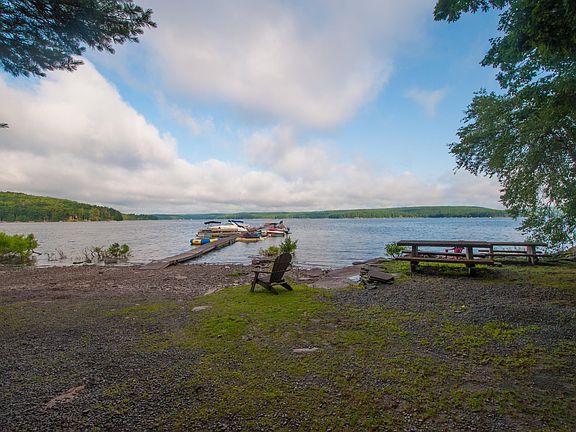 LOG Cabin at LAKE WALLENPAUPACK w/Boat Slip INCLUDED. This charming getaway is located in Colony Cove North and a very short level walk to your boat slip & picnic area! This 3 bedroom, 1.5 bath cabin features an eat-in kitchen, beautiful stone wood fireplace, master bedroom on 1st w/full bath, 2 bedrooms on the 2nd floor w/a 1/2 Bathroom, T&G ceilings & walls, hardwood floors on the 2nd floor, 1-car garage in the lower level & spacious front yard. NEW roof & outside newly stained and sealed. Original owners & first time on the market. A perfect location to make memories at the Lake!, Beds Description: 2+BED 2nd, Beds Description: 1Bed1st, Baths: 1 Bath Level 1, Baths: 1/2 Bath Lev 2, Eating Area: Dining Area