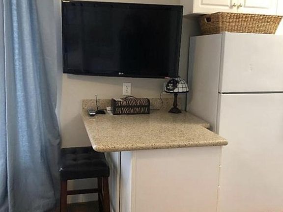 Very nice studio condo in great location!! Condo is fully furnished with twin size bed with trundle, tv, kitchen appliances & dishes. Quartz counter-tops in kitchen. Lots of storage space. Nicely decorated!! Reserved parking space under the covered parking area. Laundry room on-site. Monthly condo fees include cable & internet, water, garbage, pest control, building insurance & exterior building maintenance. Common area lobby and lounge area perfect for entertaining or relax on the veranda.