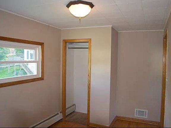 Hardwood floors throughout. Recently renovated bathroom. 2 bigger bedrooms, one smaller would be perfect for an office. Front porch with room for a few chairs. Garbage/sewer included. You pay electric, gas, water. 12 month lease. No smoking/no pets. You mow lawn.