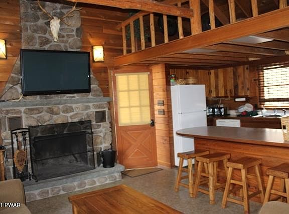 LAKE WALLENPAUPACK enchanting 2nd tier Pocono Mountain retreat. Knotty pine interior Chalet featuring 2 bedrooms, plus loft, living room w/stone fireplace for chillyLake nights, deck, and newer garage for boat storage. Access area is a stone's throw away and a DEEP water boat slip is included! You will love the coziness and privacy ofLakeland North Association.