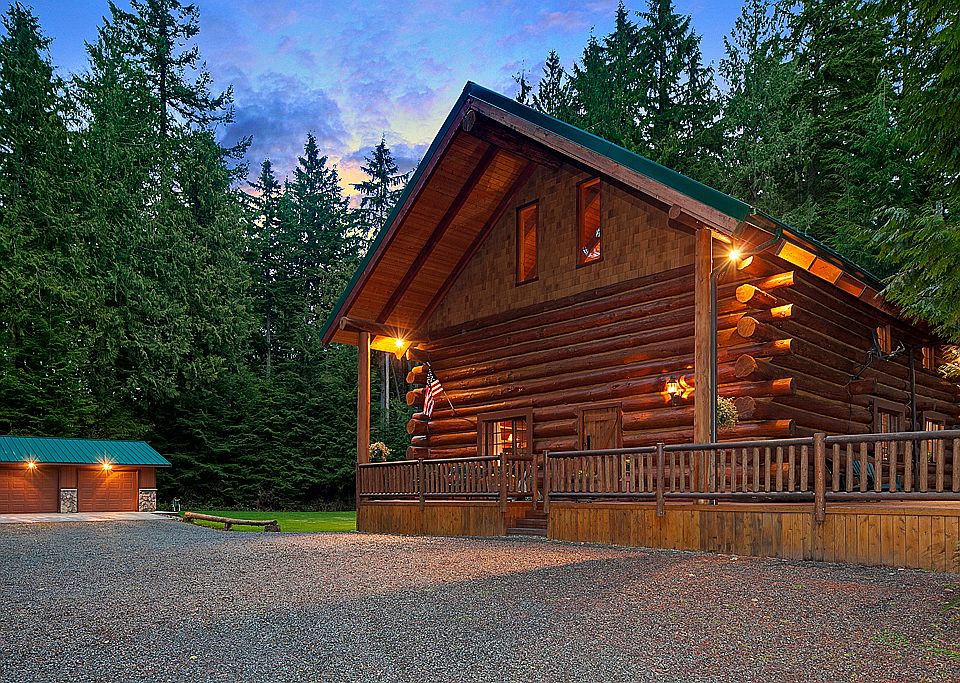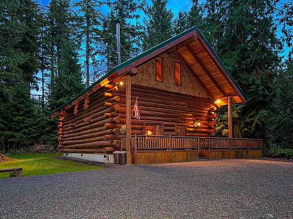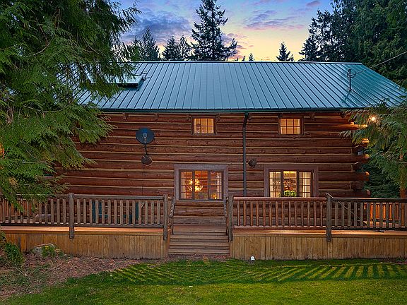 Impeccable Craftsmanship in this Authentic Log Home. This is the Great Northwest at it's finest! With 32' ceilings and Hand Crafted Western Hemlock Logs with an average diameter of 17", you won't find another one like it. Open floor plan with 3 large bedrooms, claw foot tub and double sinks in main bath, custom log and iron staircase and a floor to ceiling rock fireplace. Great kitchen, perfect for entertaining with tons of counter space. Huge Cedar Trees Galore on this 4.67 Acres