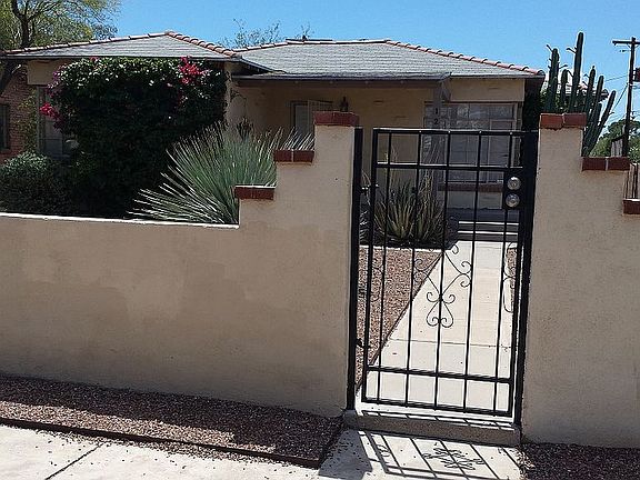 This property is a actually 2 lots, double deep with an 1100 sq ft home on the front lot with it's own front and back yard and inside laundry room. The rear lot has a separate 400 sq ft full studio with its own separate yard and entrance. There is a large security gate separating the front house lot and the studio lot that can be opened to combine the two properties into one very large open property. Located just half mile from the University of Arizona (U of A), less than 1 mile from the University Medical Center (UMC), and close to Downtown. The front home has 2 bedrooms, living room, dining area, sun room, kitchen, laundry room, and 1 full bath. central A/C and heat. Living room has gorgeous wood beamed ceiling, lighted ceiling fan, and wood floor. Large bedrooms w/ wood floors, large closets, wood shutters, and lighted ceiling fans. Kitchen has tons of storage, dishwasher, microwave, refrigerator, gas range. Sun room can be used as small office, study area, family room, or game room. Inside laundry room w/ washer and dryer. Built-in hall cedar closet for special storage plus hall linen closet. Beautiful low-maintenance backyard w/ built-in BBQ. Enclosed front yard w/ sidewalk and streetlights. Heavy security gates to backyard. Studio has private entrance, dedicated separate yard, French entry doors, skylights, kitchen area with full size refrigerator/freezer, range, dishwasher, microwave, disposal and tons of storage, large walk-in closet area inside laundry room with washer and dryer. AC/heat,security doors, alarm, large backyard with storage sheds, dusk to down lighting. Secure carport parking for 2 cars with additional free parking on street or in enclosed yard.