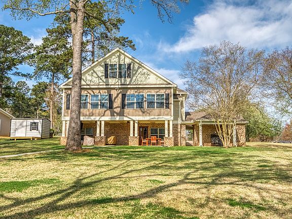 This Lake Sinclair Custom Craftsman renovation is located off Hwy 441 and convenient to all of your favorite shops and restaurants. The footprint of the original homesite is all that remains. The home was completely rebuilt in 2016 with the utmost attention to quality and detail. 4/3 with master on main. Nearly every room on main floor has coffered ceilings and detailed moldings. LVP flooring throughout. DR with wainscotting and palladian windows. Custom kitchen with granite/ss on main and a second full kitchen in the terrace level suite. Incredible main lake views from a protected cove. Lake views can even be enjoyed from the street side covered porch. Lakeside covered patio with fireplace and a mounted TV . Double boat shelter. Concrete seawall. Deep water. Too many extras to list.