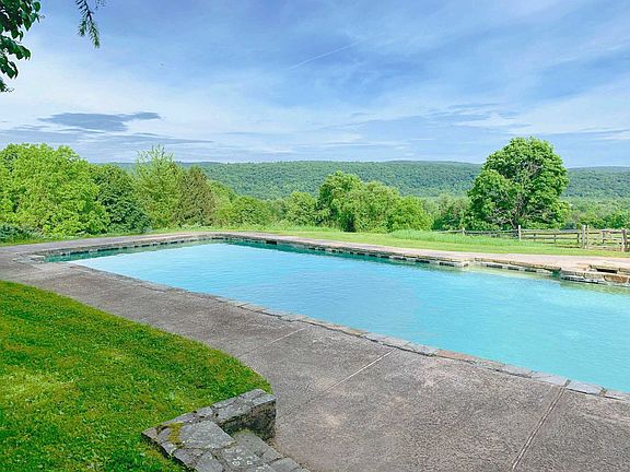 With westerly long-views of the Harlem Valley and Cat Rock Hill, both traversed by the Appalachian Trail, a circa 1960 Brick Bungalow on 5 private and secluded acres is now available on Quaker Hill, NY. Minutes from the Village of Pawling and Metro North Station popular with NYC commuters, 126 North Quaker Hill Road is a 70 mile drive north of Manhattan. The 6 room bungalow's first floor includes the two-level Living Room with fireplace, 1/2 bath, open plan kitchen, dining room, great room combination, Master Bedroom with bath, and attached seasonal screen porch with its own fireplace. Two bedrooms and full bath complete the second floor. The centerpiece of the property is the oversized swimming pool designed for exercise and enjoyment sited to enjoy the views. A pole barn suitable for horses and seasonal guest cottage complete the 5 acre offering. 67 additional acres are available, currently under ag-exempt, leased for livestock grazing. Also listed in HGMLS.