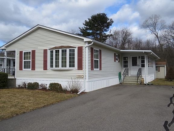 ~ Welcome to Rocky Knoll Estates~ This over 55 community offers a pet friendly, well maintained, neighborhood. Great location , close to shopping and highways. This DOUBLE WIDE Home offers an open floor plan, with vaulted ceilings with newer Kitchen appliances, a newer roof and a brand new hot water tank. A screened porch was added after this original owner moved in( not included in the sq. footage). The location within the park offers a quiet private back yard with a wooded view. Just sit back and enjoy the privacy. There is a a patio and shed for storage included. Easy to show on lock box.
