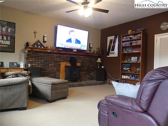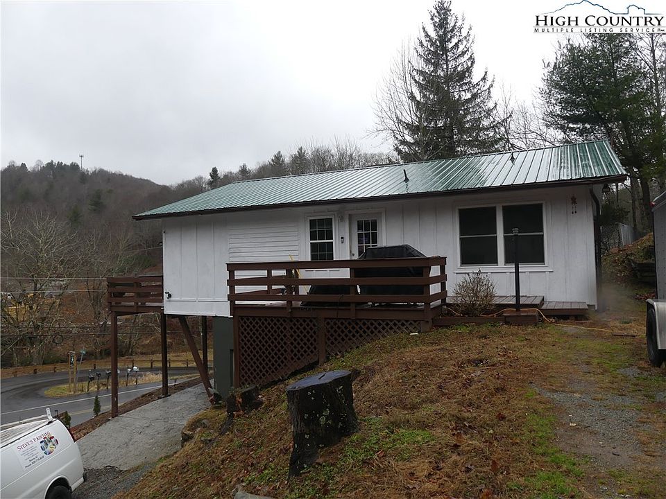This 3 bedroom, 2 bathroom has NEW UPDATES - New Board & Batten siding, new double pane windows and storm door. new carpet on the main floor. Parking for at least 4 cars and vented propane brick fireplace for the winter months. With a metal roof, you can not ask for a house with less maintenance. Large side deck with mountain views and overlooking the New River. A large Utility building with power , metal roof and feather Edge siding beside a partially fenced in back yard for your pets. Conveniently located between Boone and Blowing Rock, and directly across the street from the New River Gold Mine Branch Park and Trail. Sit on the Deck and watch the July 4th Fireworks from Tweetsie. Basement is partially finished and also has a laundry/mud room with a workable shower. Deed states lot is 0.19 acres, but CRS shows 0.40 Acres in the drawing and front, but 0.19 acres in the detail. If warranted a New survey maybe needed to verify lot size.