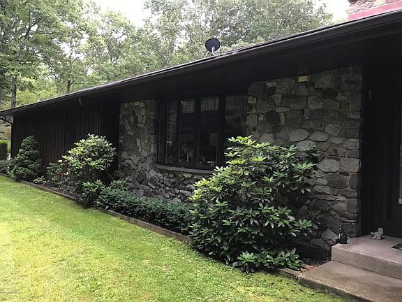 Backs to STATE FOREST LAND! Walk right out the door to hunt & hike. Private setting yet just off Route 402 between I-80 and I-84! Beautifully maintained 3 BR, 2 Bath Ranch with attached oversize Garage and bonus detached garage, updated Kitchen with Quartz counters and Tile back-splash. The Great Room boasts Cathedral Ceiling, stone fireplace with wood pellet insert, skylights, and white cedar accents. The Living Room has oak floors, a stone fireplace with insert and bay window - all on a lovely 1.92 acre parcel in the woods. Architect designed floor plan with comfortable one floor living! Located on a private gravel road. No community. Wood stove in basement. Plenty of storage and workshop space. This is the perfect year round or seasonal home! Wallenpaupack School District. Low Taxes!