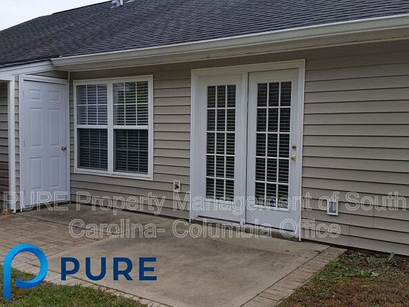 Adorable patio home in the Palm Court neighborhood in Lexington. Two parking spaces out front and covered front porch. The fenced in backyard with patio and storage room backs up to a wooded area. Very open feel inside. High vaulted ceilings in the kitchen and living room. The kitchen has a dishwasher, fridge, stove and built in microwave and eat in area great for a small table and chairs. Kitchen is open to the living room and has a high counter with bar. The first bedroom is on the front of the home and has a door directly to the full bath. The great room is spacious and has a ceiling fan and TV space. Built in glass shelves are a great area to display photos etc. Full size washer/dryer connections. The master bedroom has high vaulted ceilings, double windows and a ceiling fan. Master bath has a shower/tub combo and walk in closet. Easy access to Lexington, I-20, Hwy 1 & Hwy 378. Pets under 25 lbs. accepted. All PURE Property Management residents are enrolled in the Resident Benefits Package (RBP) which includes renters insurance, HVAC air filter delivery (for applicable properties), credit building to help boost your credit score with timely rent payments, $1M Identity Protection, move-in concierge service making utility connection and home service setup a breeze during your move-in, our best-in-class resident rewards program, and much more! More details upon application. This property comes equipped with Gig-Speed Internet at $65.00/month! Amenities: covered front porch, air conditioning, fenced in backyard patio
