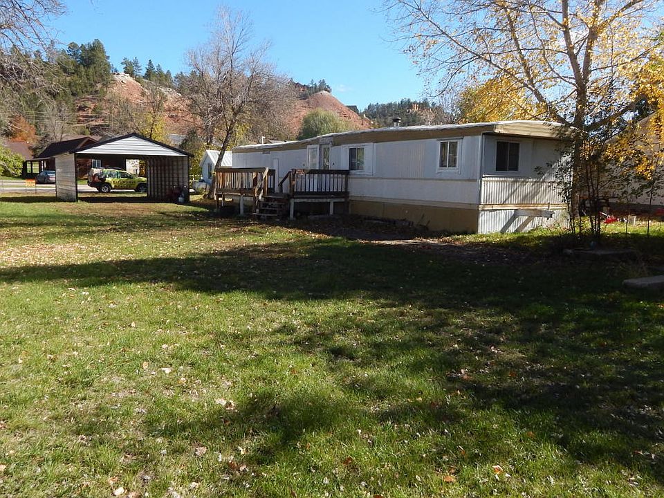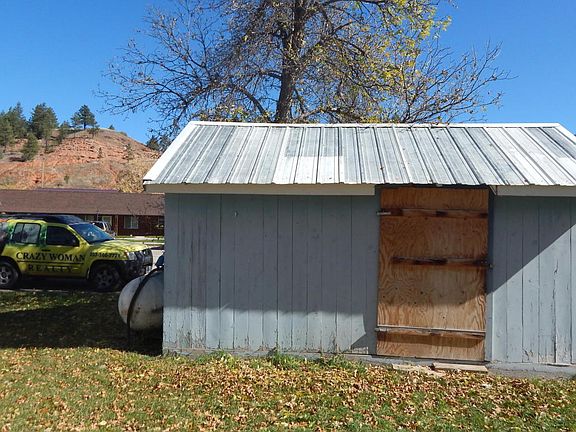 Oversized lot is old neighborhood of Hulett. Mature trees Hobby shed 10x17. Access off both Pine and Park.