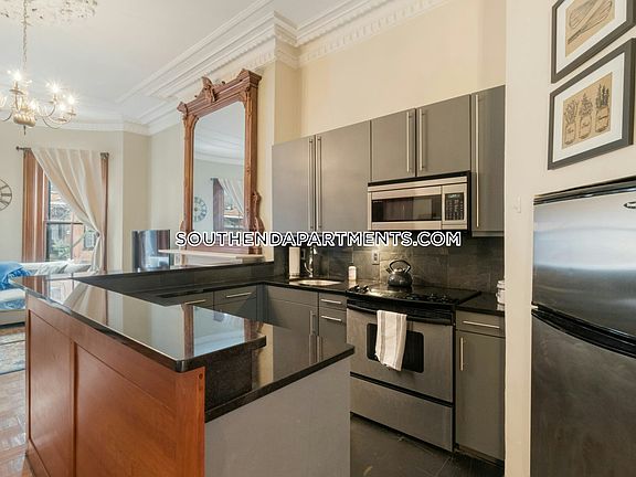 Beautiful South End Apartment featuring in unit washer and dryer, hardwood floors, decorative fireplaces, and modern kitchen! Heat and Hot water Included