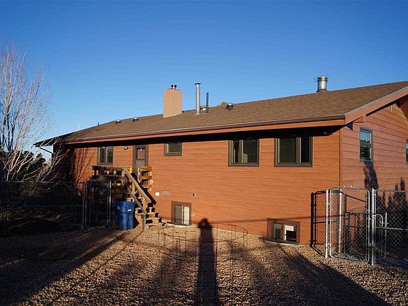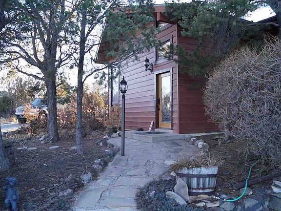 Home is extensively upgraded with expansive newer kitchen- Oak cabinets including a bake center, island with Wolf gas range-bottom vent single oven, granite countertops, corner sink with views of Mts.; sub-zero fridge(matching oak front); beautifully upgraded bathrooms- tiled, and Corian counters, one with jetted tub ;Upstairs has hardwood floors, views from dining/living room picture window. Walkout super large patio over garage w/trek deck(20x20) including a hottub. Beautiful Sangres views. . Master bdrm upstairs has extended area for office separated by partial wall and double fireplace ; baseboard radiant heat upstairs. Front door enters into a solarium plus stairs to upper deck (held a grand piano) - excellent breakfast area with views. Lower level has been totally remodeled with lovely floor tile, extensive recessed lighting. Electric has been totally rewired throughout; Fireplace w/insert. Added kitchenette with granite counters, electric cook top, fridge, dining/living room area, infloor radiant heat down; winecellar/workshop; customized wainscoting(hand painted w/leaf pattern), 2 large bedrooms, upgraded full bath. Property has many trees for privacy, plus garden beds, and zero-scape w/drip system. This home is great for entertaining with 2 separate living areas. A must see..