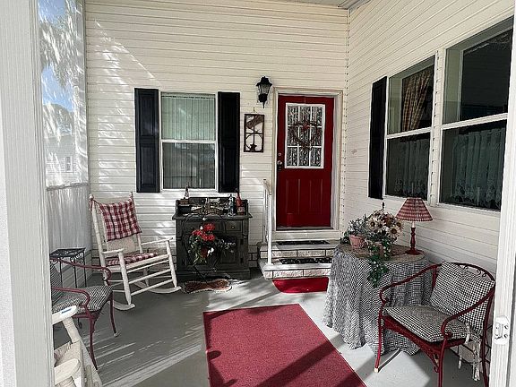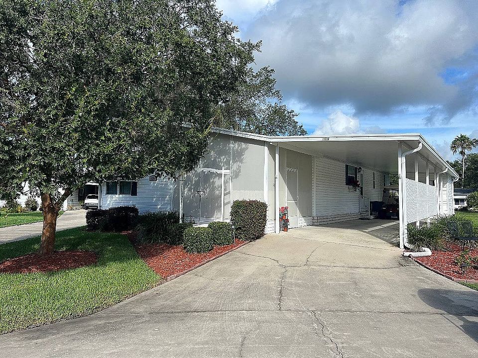 This superbly kept home in Mid Florida Lakes is ready to move in. See what makes this active 55 community so spectacular when you tour this 1232 sq ft home. A 34 ft. The covered car port handles all your car and golf cart needs. Enter the home thru the recently screened Florida room. A den/office/bedroom space opens to the living room with a dedicated dining room with chair rail accents. The tiled kitchen is roomy and includes all appliances. Hardwood flooring and Berber carpeting with great floors. The large walk-in closets in both bedrooms are HUGE! One bath with walk in shower, one with a tub bath. This home sits on a quiet street with exceptional neighbors. Come see this park and all the amenities offered. RV and Boat storage, boat slip rentals are available. The park has a full time activities director, numerous sports clubs and groups. LB11091