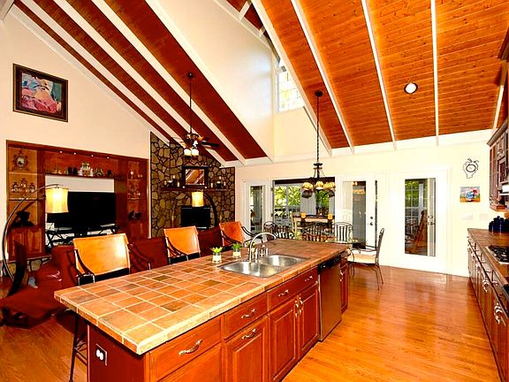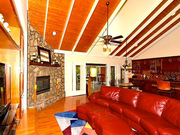 Immaculate LAKEFRONT home with stunning open floor plan for rent. Spacious living area with vaulted beamed wooden ceilings, stone fireplace, beautiful hardwood floors, gourmet kitchen complete with gorgeous cherry wood cabinets, stainless steel appliances and large island. Full size windows allow you to enjoy a beautiful view of the mountains and lake. This spectacular home has an enormous master suite with a large sitting room, and the master bath has a tiled walk in shower, whirlpool tub and double vanity. There is a sun room that overlooks the lake that extends the entire length of the house. Two large secondary bedrooms share a full size bath with a walk in shower, and there is a large laundry room with built in cherry cabinets. The terrace level living space was recently finished and has a large living room, exercise room and office. A covered deck spans the length of the house.Platform dock is located on the lake . The lake is pristine- ideal for fishing and swimming. LAKE ARROWHEAD SUBDIVISON- Gated community with 2 lakes and 18 hole golf -course. Enjoy the beauty of the mountains and the lake! This house has so many extra's and must be seen. Lease purchase considered. Please e-mail or text for additional information. Monthly rent $2400.00 Current value on Zillow $471,339. Owner will pay HOA fee's- Tenant responsible for all utilities. Lease /Purchase will be considered.