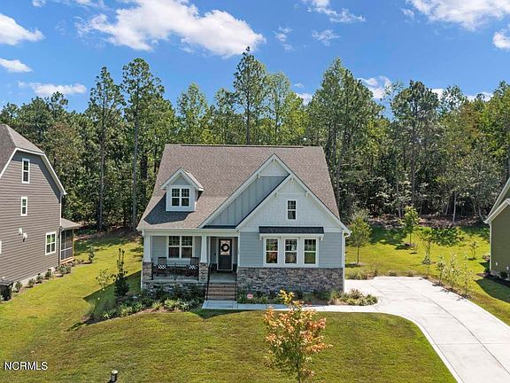Pristine 2024 Mid-South Club home on a quiet street with views of hole #4. This home was new in March 2024 and upgraded by the current owners with many features that builders do not provide - Plantation Shutters throughout first floor, Custom Master Closet Renovation, Accent Wall in home office with installation of floor outlet, new light fixtures in Kitchen/Dining, Samsung Smart Refrigerator with display for TV/Internet viewing and Samsung Washer & Dryer. Builder warranty transfers to new buyer and builder quality walk through will be done before closing. Side entry garage makes for great curb appeal. Downstairs master with rainfall tile shower w/ seat, dual vanities and tub. Gorgeous kitchen with gas cooktop, pantry and quartz counters with island w/ seating space. Popular floor plan provides huge loft area upstairs. HOA dues include Spectrum internet and cable. One of Moore County's finest communities. Club membership transfer fee to be paid by sellers.