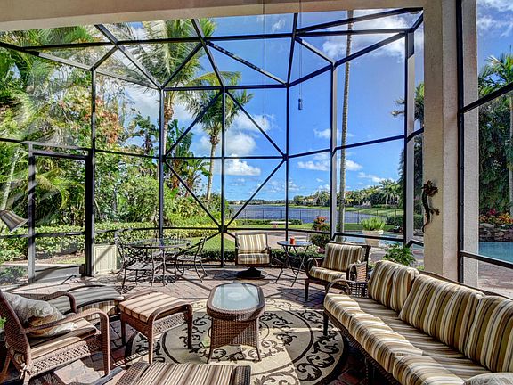 Water, water, water- the best view in Mirasol. Spectacular gated entrance opens to your private motorcourt with 4 car garage. Four full bedroom suites, custom office/den. Heated flagstone pool and spa and much more. Water, water, water, one of few Custom homes in Mirasol with a long lake view and private motor court. As soon as your approach the front door, you enjoy a long and wide lake view. A perfect one story Mustapick built home with four full bedroom suites and a spacious master bedroom with closet built-ins fine cabinetry and jacuzzi tub. Quality cabinetry compliments this commercial style kitchen with walk in pantry, double oven and center island with wine cooler. Fabulous furniture quality wall unit in family room and office. Brand new roof and gutters.