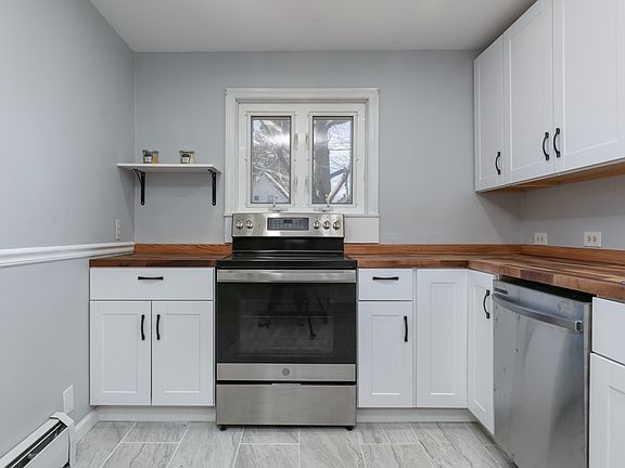 Total remodel just completed. Full detailed sheet available with updates completed. Gorgeous white kitchen w/stainless steel appliances, butcher block counters and tile floors. Hardwoods redone, painted throughout. Bathroom overhaul with Swedish toilet. 3rd floor space finished for additional living space. Basement painted with drylock, retaining wall installed, storage room added.