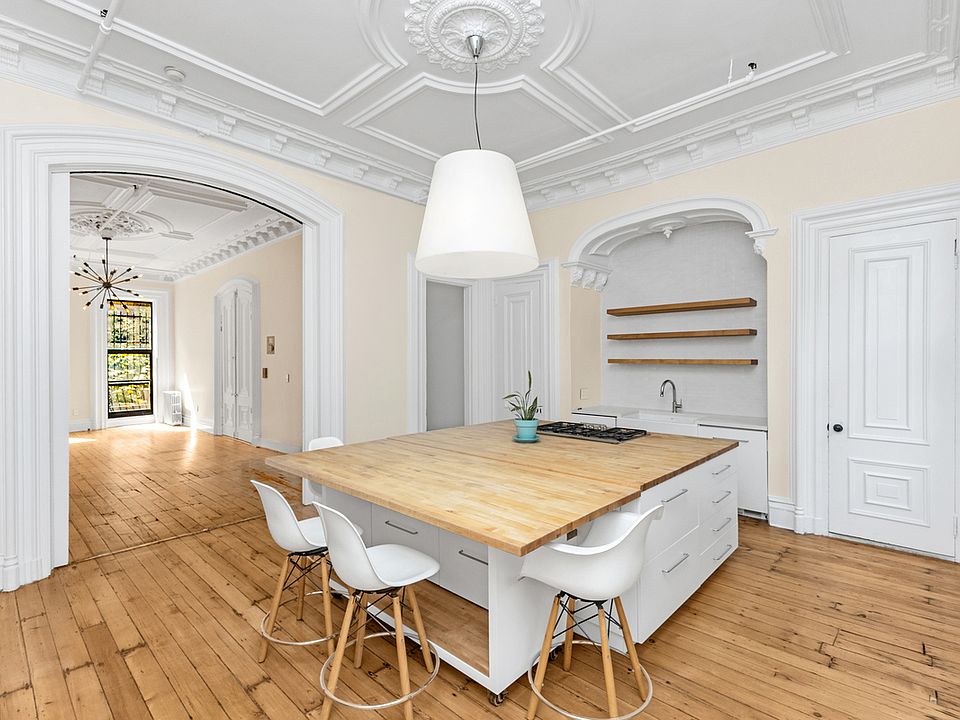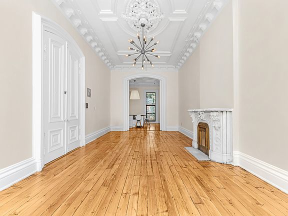 Welcome to your beautifully renovated 3-bedroom, 2 1/2-bathroom duplex apartment in a classic brownstone building in the heart of Prospect Heights. This charming residence seamlessly blends historic character with modern convenience, featuring an in-unit washer and dryer, a fully-equipped kitchen with high-end Miele appliances, stunning marble countertops, and a spacious kitchen island. The oversized rooms, including an impressive 26-foot living room and a 22-foot wide kitchen/dining area, are perfect for entertaining. Two beautiful fireplaces add immense character to both the kitchen and living room, providing an inviting ambiance. Elegant mahogany pocket doors, grand moldings, and restored 13-foot plaster ceilings enhance the charm throughout. The rear parlor, highlighted with a beautiful modern chandelier, enjoys abundant light from its large windows, while the front parlor showcases striking Italianate floor-to-ceiling windows dating back to 1800s. The large main bedroom features a private bathroom with a double sink, and all bathrooms are equipped with custom glass and ceramic tiles. You must step outside to a newly built terrace that offers direct access from the rear parlor kitchen and dining area, ideal for summer gatherings. The expansive 1,500 sq. ft. backyard, with ample space for gardening, allows you to cultivate your own urban oasis while providing plenty of privacy for relaxation. Conveniently located just steps from Prospect Park and the 2, 3, B, and Q trains, you're also a short stroll away from the Barclays Center. Welcome home!