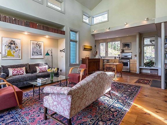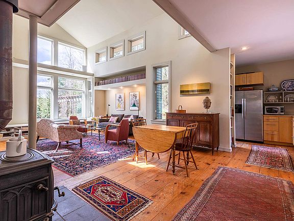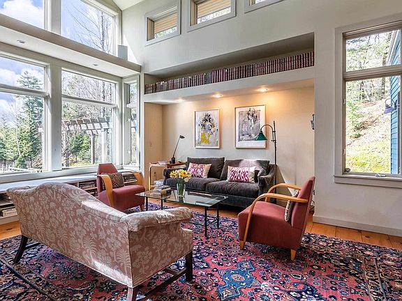 This spectacular, custom designed three-Bedroom, 2.5 Bath contemporary is located on a secluded, tranquil 2.26 AC lot with a lovely view. The superb quality of fit and finish is evident throughout. Light, space and line are beautifully balanced, and thoughtfully designed to integrate interior and exterior spaces seamlessly. The open concept design offers a great flow, perfect for living and entertaining. The Living Room, with cathedral ceiling, and a wall of windows (overlooking a stone terrace, magnificent gardens, and reflective pool) is perfectly situated to optimize the solar advantage. The "Garden Room" with slate floor and antique soapstone sink, doubles as a Dining Room. The spacious, first level Master Bedroom w ensuite steps out to a private deck. There are two Guest Rooms and shared bath on second level. Attached garage, radiant heat throughout, woodstove, outdoor shower. Five minutes to General Store, Brewery and Restaurants in Proctorsville Village. Eight minutes to Okemo Mountain. Easy access to I-91. Absolutely NO DRIVE BY'S please.
