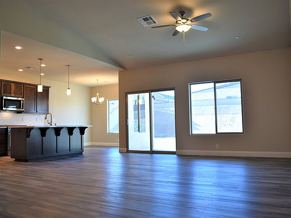 Nestled in the hillside of College Heights, this home currently under construction provides 1,875 sqft designed to accommodate your needs. With form and function in mind, amenities include quartz counter tops in the kitchen and bathrooms. Tile flooring in the entry, kitchen, nook, bathrooms, hallways and laundry. Towering 9ft ceilings throughout the home. Carpet and ceiling fans add comfort to all bedrooms, the great room and option room. The split floor plan provides privacy with a secluded master suite featuring a double vanity, 5 ft soaking tub and 5 ft shower, walk-in and privacy closets. The front option room has potential as 4th bedroom, partially open den/office or open 2nd dining area. It has an indoor laundry room. Oversized 2 car garage has an automatic opener for the roll-up door. R-38 insulation in the attic and R-15 in the walls. 96% hi-efficiency forced air heater. Ground mounted AC unit Seer 14. Natural gas tankless water heater. Energy efficient windows and lighting. There is a fire suppression system in the ceiling. A fully trussed covered patio helps to keep it cool. Block wall and metal fencing with side gate. HBW 2-10 home warranty. Inquire today!