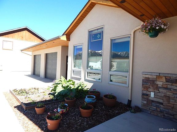 Newer Custom home with beautiful landscaping and great views. The back yard is fantastic with a full privacy fence, turf, a composite deck and an area that has gravel to use for parking other vehicles. The front has xeriscaping and raised beds with a rhubarb plant, other vegetable and perennial flowers. As you walk in you will see the large vaulted ceilings and cut in roof and the views of Mt. Princeton. The home feels big and spacious. The kitchen has knotty alder cabinets, a large kitchen island with granite, black stainless steel refrigerator, gas range and eat in dining area. You could walk out to the covered deck if you want to dine outside. The air conditioning is wonderful to have! A large primary bedroom with walk in closet and en suite bathroom with a deep soaking tub and walk in shower. 2 additional bedrooms and full bath between. The Murphy bed is an optional if a buyer would like to have it. This house has all luxury vinyl and no carpeting. A large utility room with washer and dryer and extra space for possibly an exercise area. It's an oversized 2 car garage with a very convenient man door out the front of the house. Just 5 minutes to town to enjoy all the activities, the town park, restaurants and library. Directly across from this home will be the new Billy Cordova Memorial Park.